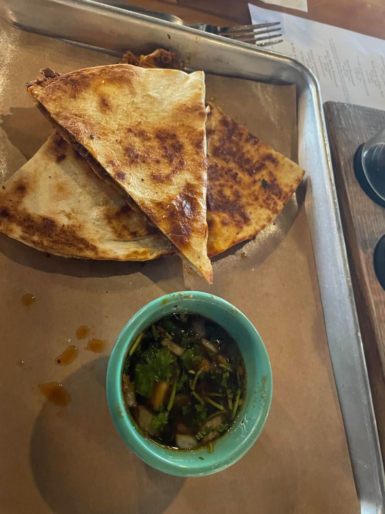Technically, it’s One-Eyed Pete’s that does the food. I haven’t had much from them, so to say I’m offering a fair review is a bit of an overstatement. One time I had the Birria Quesadilla. It proved okay. I wouldn’t recommend going to them for this item; it was far too thin without enough meat, and really, I expected better. A regular quesadilla would have sufficed and maybe proved a better option for my wallet.