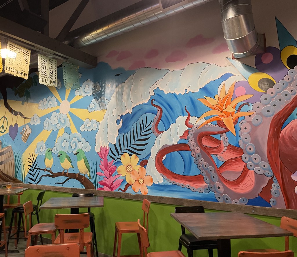 This place has an interesting vibe. Their website described the place as “a Caribbean/Retro styled taproom” with a “very chill atmosphere with a reggae vibe.” I can definitely see and feel it. It juxtaposes a working-class bar with colorful artwork on the walls. It isn’t the biggest brewery, but the bar is nice with the surrounding tables.