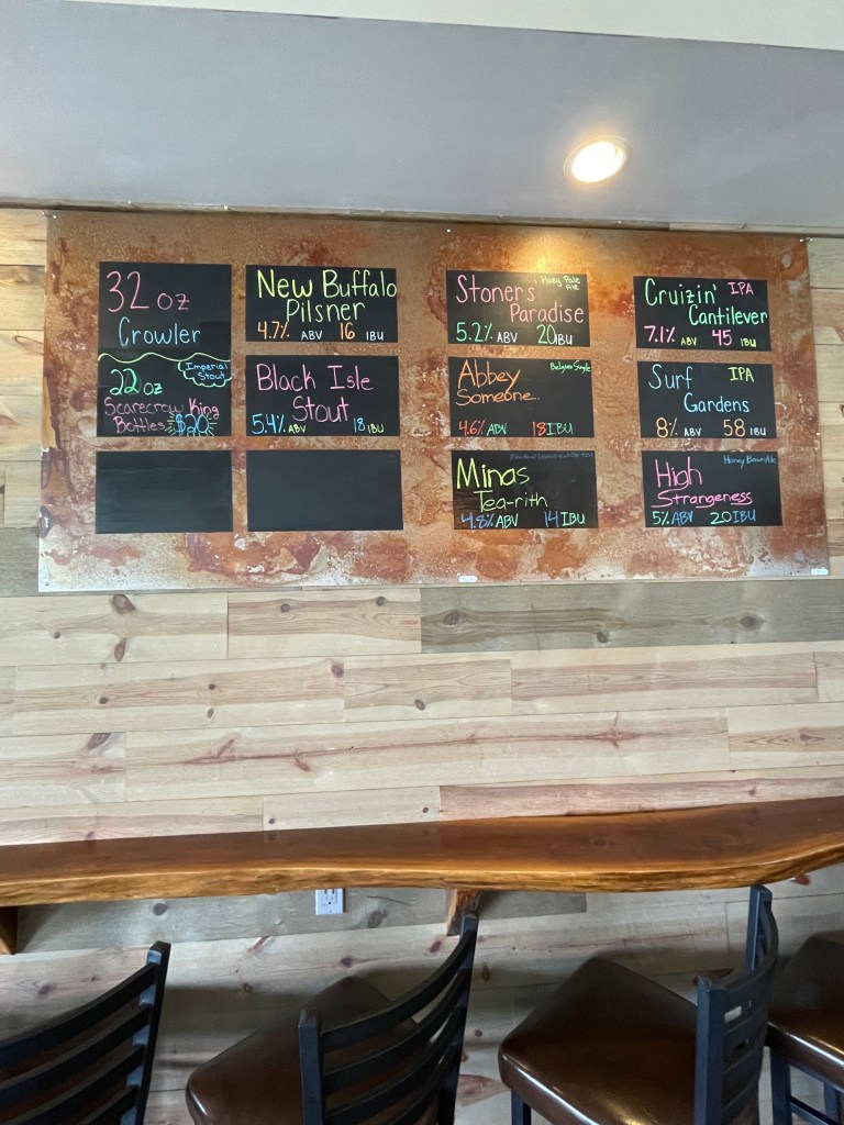 Spacious. That’s the first word that comes to mind when describing Ghost Isle Brewery. The parking lot is huge, the building is huge, and inside it’s huge as well. Mass seating galore. The bar loops around, providing a square that has many seats. The outside area overlooks the wetlands.
