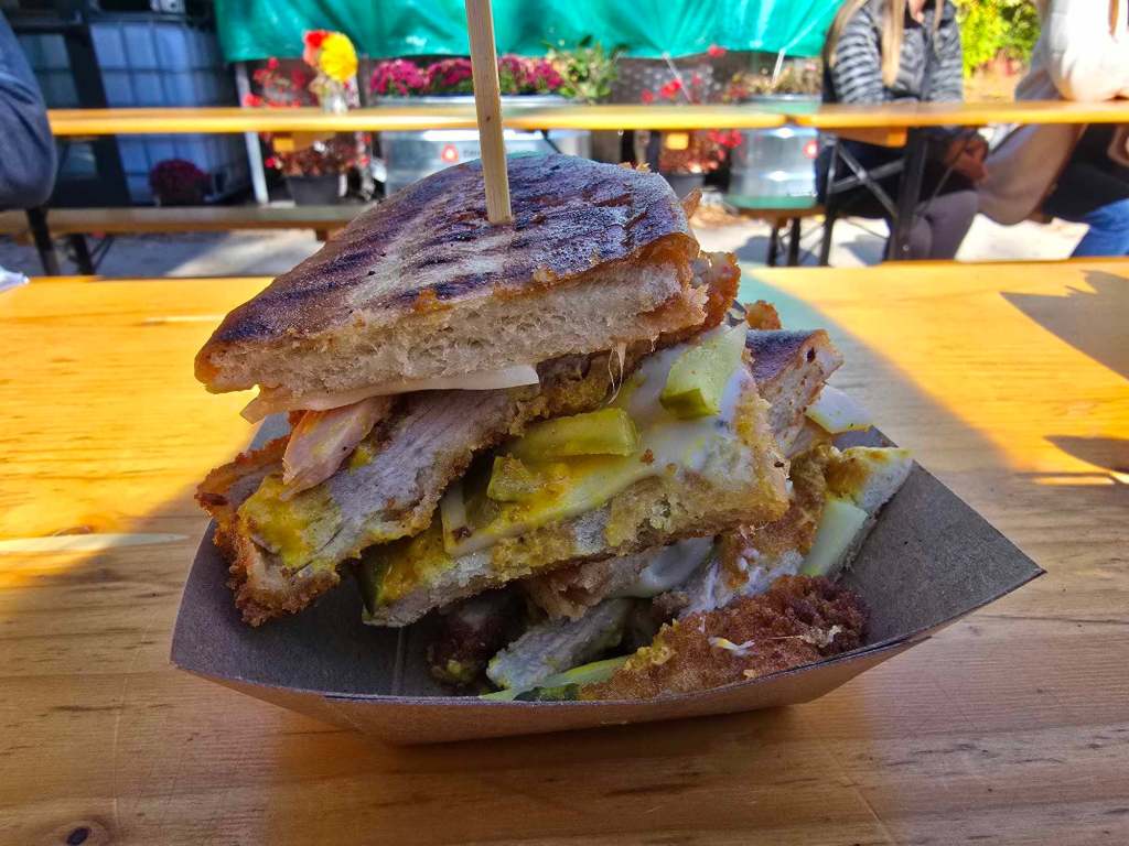 The food truck, Kitchen 55, killed. I tried a Cubano 55—breaded pork with a touch of smoked ham, then the usual culprits followed (pickles, mustard, bread). The difference here is using the breaded pork piece instead of shredded pork; it’s a very interesting take. It could be because I’m a fan of schnitzel, but it worked. (Generally, I’m a fan of more traditional Cubanos.)