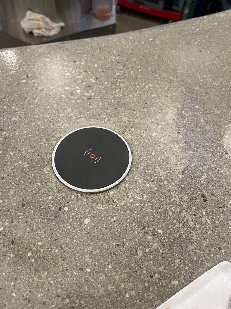 The bar is badass, almost in a full circle. To top things off, it has something I’ve never seen before: phone chargers at every seat where you just set your phone on it and it charges. The atmosphere the bar gives off is great, and it helps customers see different T.V.s, ensuring this is a great place to watch any game. (I don’t think they’re necessarily going for a sports bar vibe, but as an avid Michigan—not getting into the whole state versus regular debated as I cheer for both—sports fan this is awesome.)