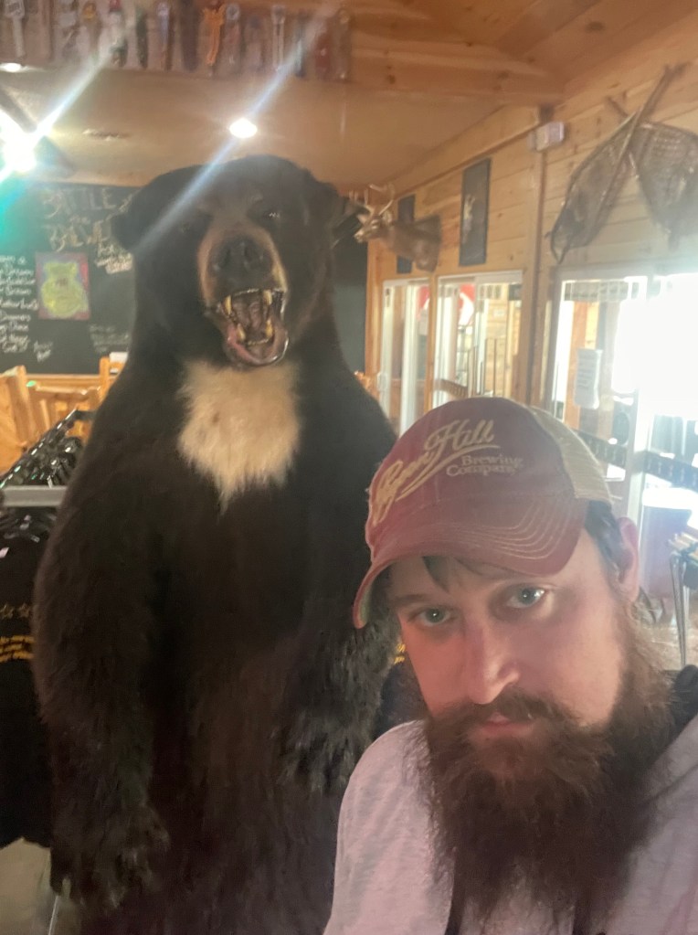 I took a picture with the bear. Yes, it was a dead bear (get it?). I’ll stop. Perhaps it’s too “on the nose.” But the sign telling people not to touch Dead Bear Steve added a nice sense of humor. You get strong pub vibes, or tavern vibes (call them what you will) in this place—what’s not to love about that? I love me a good pub with a strong wooden bar to drink cold beers from.