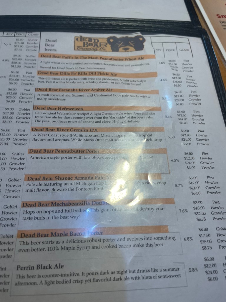 Dead Bear has been a staple stop on my way to my family cabin in Alpena. While it’s no Austin Brother’s Beer Co., it provides a nice pitstop. Is it a brewery or a brewpub? I’d lean more towards brewpub. BUT they do brew their own beers. (…And still have other beers from places.) To me, this never screams confidence when a place does this, but with all the closings, maybe I shouldn’t be as picky.