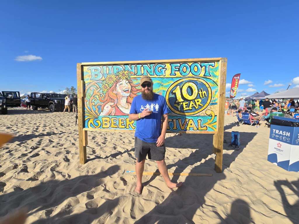 Brendon Enders, a member of the Lakeshore Brewers Guild—he runs their social media platforms on Facebook, Instagram, and TikTok—said there is a ton of work involved in Burning Foot. A board of 30 members (including Greg Moore, the executive director, who Enders reports to) are involved. Around 400 people volunteered for Burning Foot this year.