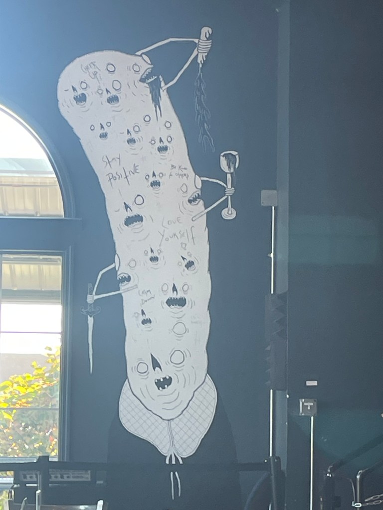 The beer that stood out the most to me was Fruit Moon (5.3% abv), a blood orange and vanilla wheat ale. This one utilizes a yeast that produces banana flavor and aromas; it drinks similar to a smoothie beer, hitting all those fruit notes while creating an interesting mouth feel. The white sangria sour (4.8% abv) proved to be an interesting offering as well. The flagship Chromatic Shatter Juicy Pale Ale (5.5% abv) wasn’t noteworthy; I’ve had better (the same weekend I had this one). I did like the peanut butter porter as well, but it wasn’t exceptional as far as the style goes. (I’d recommend checking out The Mitten for this one.)