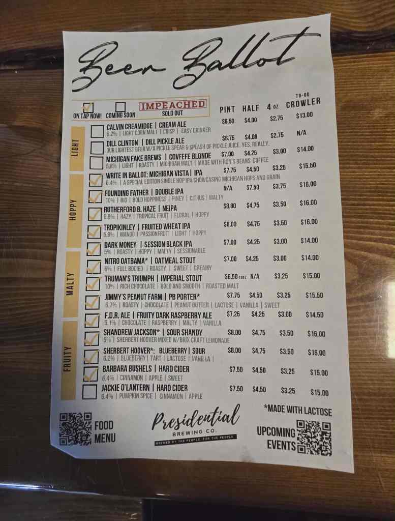 “Corny” is the first word that comes to mind when describing the vibes of this place. The fake politician signs kind of made me cringe, but, then again, I’m not a very political person and choose to keep beer and politics separate. But, for me, it didn’t really help anything and I didn’t dig the vibes.