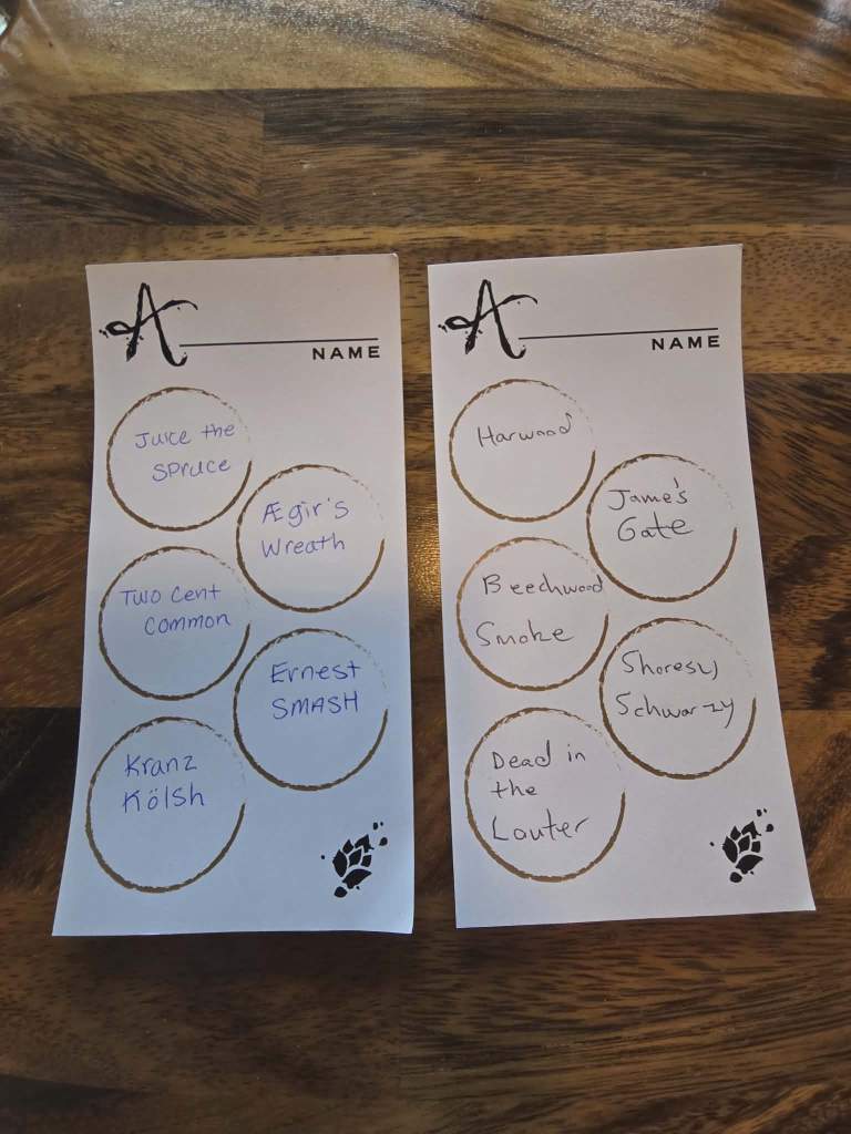 They specialize in older styles of ales. They had a pilsner, a Czech, some ancient styles such as Peruvian Chicha-Style Sacred Maize (3.8% abv), a few darker beers like a foreign extra stout, a lighter porter, a Schwarz beer, and a mix of some of the weird—a dark Mexican lager and a barrel aged version of it (something I’ve never seen before), and a Beechwood Smoke (a Rauchbier, or “smoked” beer coming in at 5.9%).
